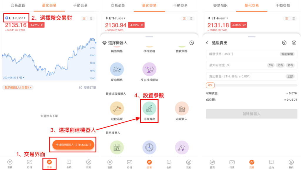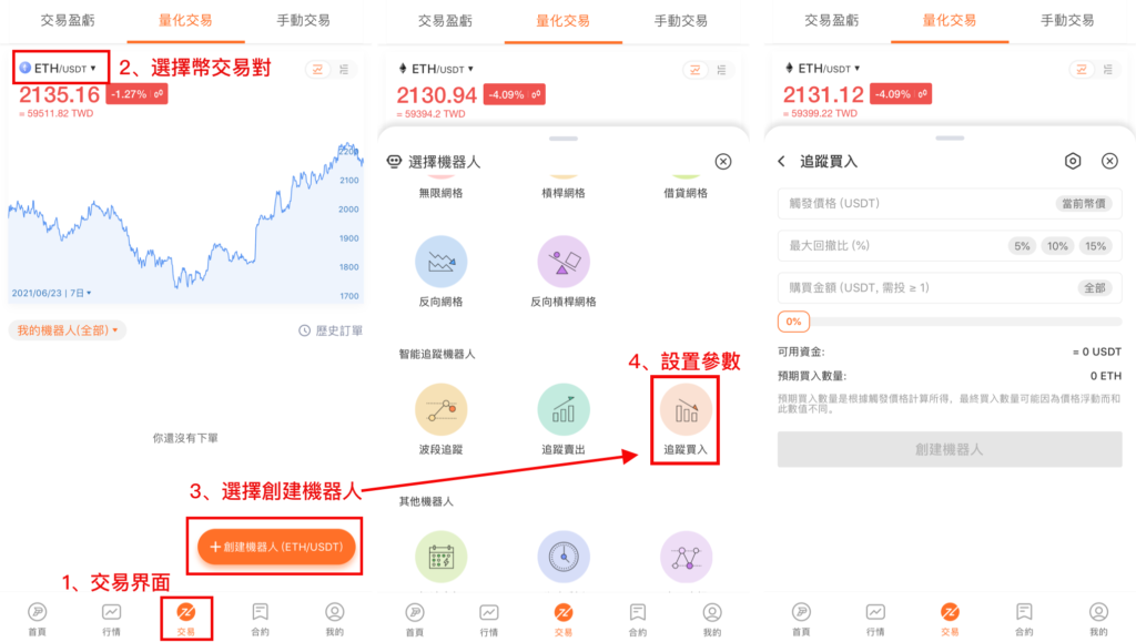 觸發價格:設置自己的預期買入價格,達到觸發價後機器人開始工作