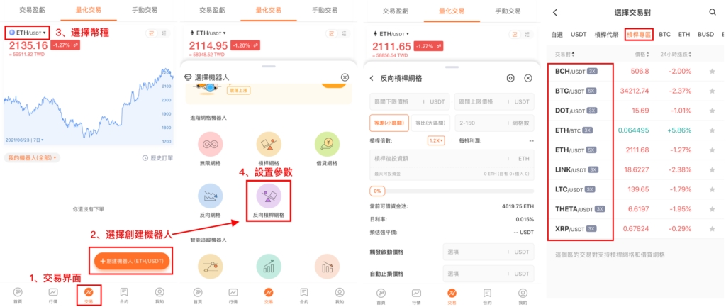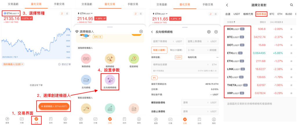 在交易界面打開反向槓桿網格