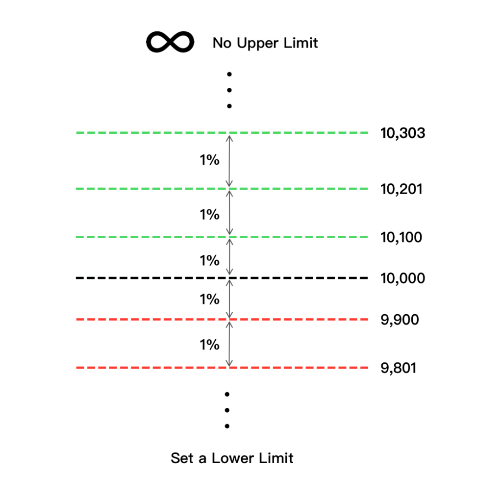 The Bot will keep doing that “infinitely”, as long as the price stays above your “Lower Limit”. Sounds good right?