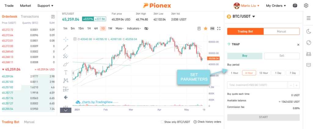 Visit Pionex and select TWAP from the list of trading tools.buy/sell through TWAP
